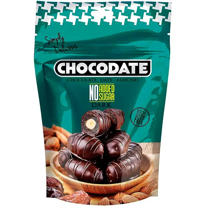 Dadler Med Mørk Chokolade m. Mandel Uden tilsat sukker 90g – Chocodate