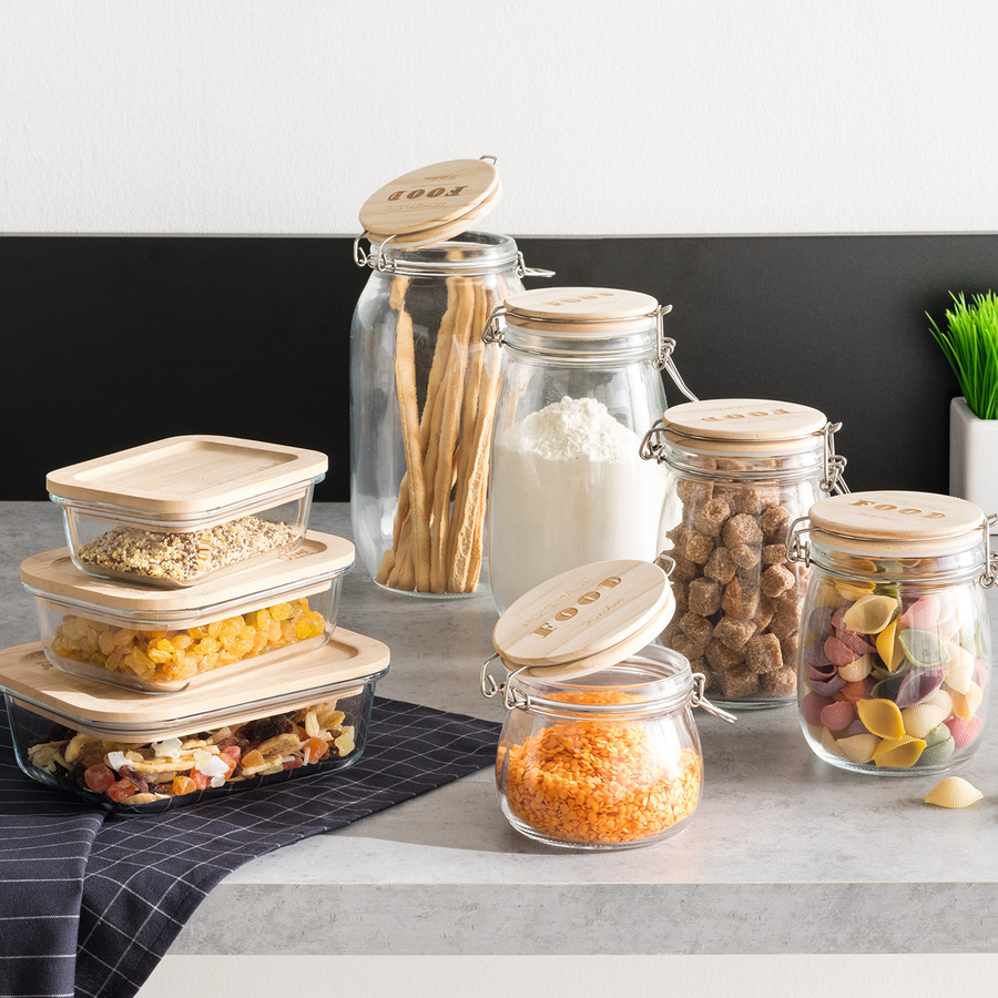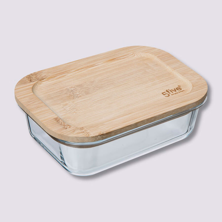 Glasskål med bambus låg til madopbevaring – 14,5 x 10,5 cm. – 1 L