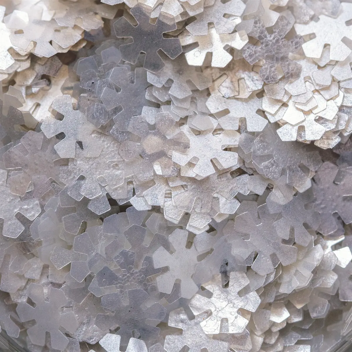 Giv dine kager et magisk vinter-look! Disse små, spiselige glimmer-snefnug fra PME er utroligt lette og funklende. Et enkelt drys er nok til at skabe en smuk effekt på cupcakes, desserter og konfekt. 100% spiseligt glimmer.