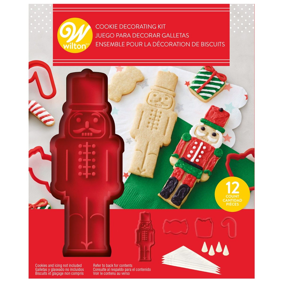 Juledekorations kit med udstikker, præger, sprøjteposer og 4 runde tylller, Wilton